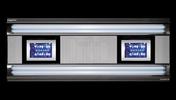Diese Leuchte kombiniert das Spektrum von T5-Röhren mit der Flexibilität moderner LEDs. Die Verteilung von LED und T5 in der Leuchte sollte sicherstellen, dass es praktisch keinen Schatten mehr in Ihrem Aquarium gibt, ohne Ihre Korallen zu verbrennen. Die Leuchten sind in verschiedenen Größen erhältlich, 60, 90, 120 und 150 Zentimeter. Jede Leuchte hat 4 T5-Röhren und 1 bis 4 LED-Module.