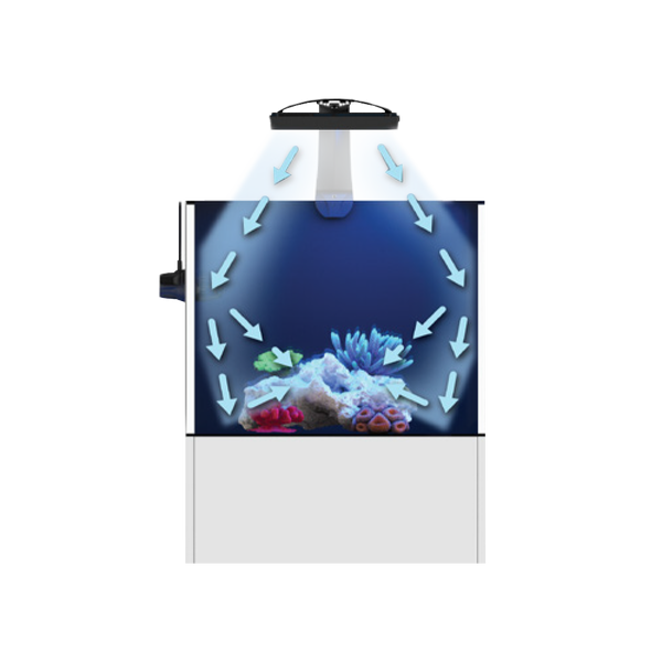 Radion ist ein Gewinner in der Kosten-Output-Gleichung. Das optische HEI2-System liefert eine Ausgabe von 126,3 Grad. Das Ergebnis ist ein unglaublich gleichmäßiger PAR über einen Abdeckungsbereich von fast 1,2 m, was es zum Radion mit der höchsten durchschnittlichen Ausgangsleistung und wohl zum effizientesten Aquarienlicht macht, das jemals hergestellt wurde.