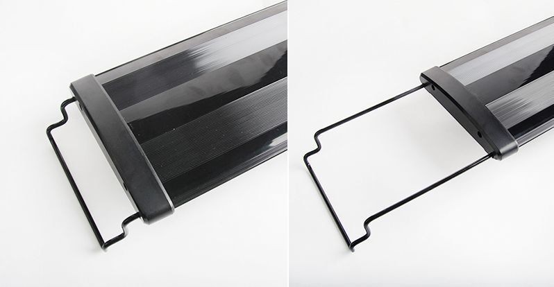 Die Metallhalterungen können um maximal 20 cm verlängert werden, sodass diese Halterungen an Aquarien unterschiedlicher Größe angebracht werden können. Die Einheiten sind nur 4,1 cm hoch und passen daher problemlos in die vorhandene Lichthaube.