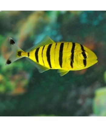 Die Goldmakrele wird etwa 75 cm groß und wird am besten in einem größeren Aquarium gehalten. Sie sind keine vielbeschäftigten Schwimmer.