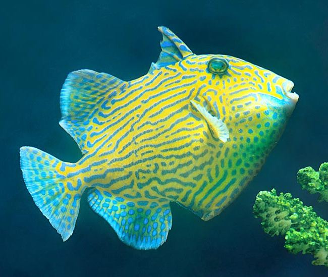 - Kraftvoller Körperbau: Der Blaue Drückerfisch hat einen robusten und aerodynamischen Körper.