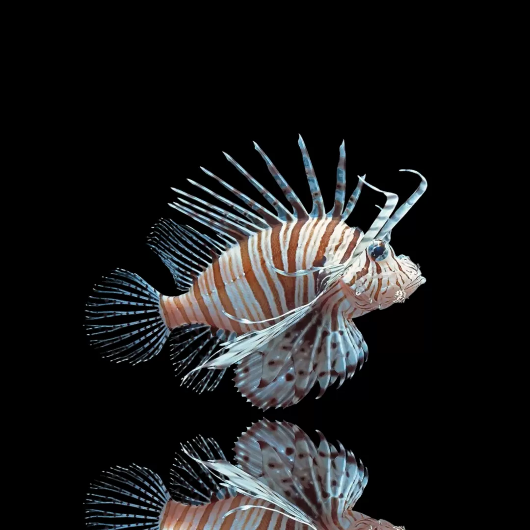Aussehen: Pterois volitans hat ein charakteristisches Aussehen mit langen, anmutigen Flossenstrahlen und auffälligen roten, weißen und schwarzen Streifen am Körper. Die Brustflossen sind breit und fächerförmig, während die Rückenflossen Stacheln mit Giftdrüsen enthalten.