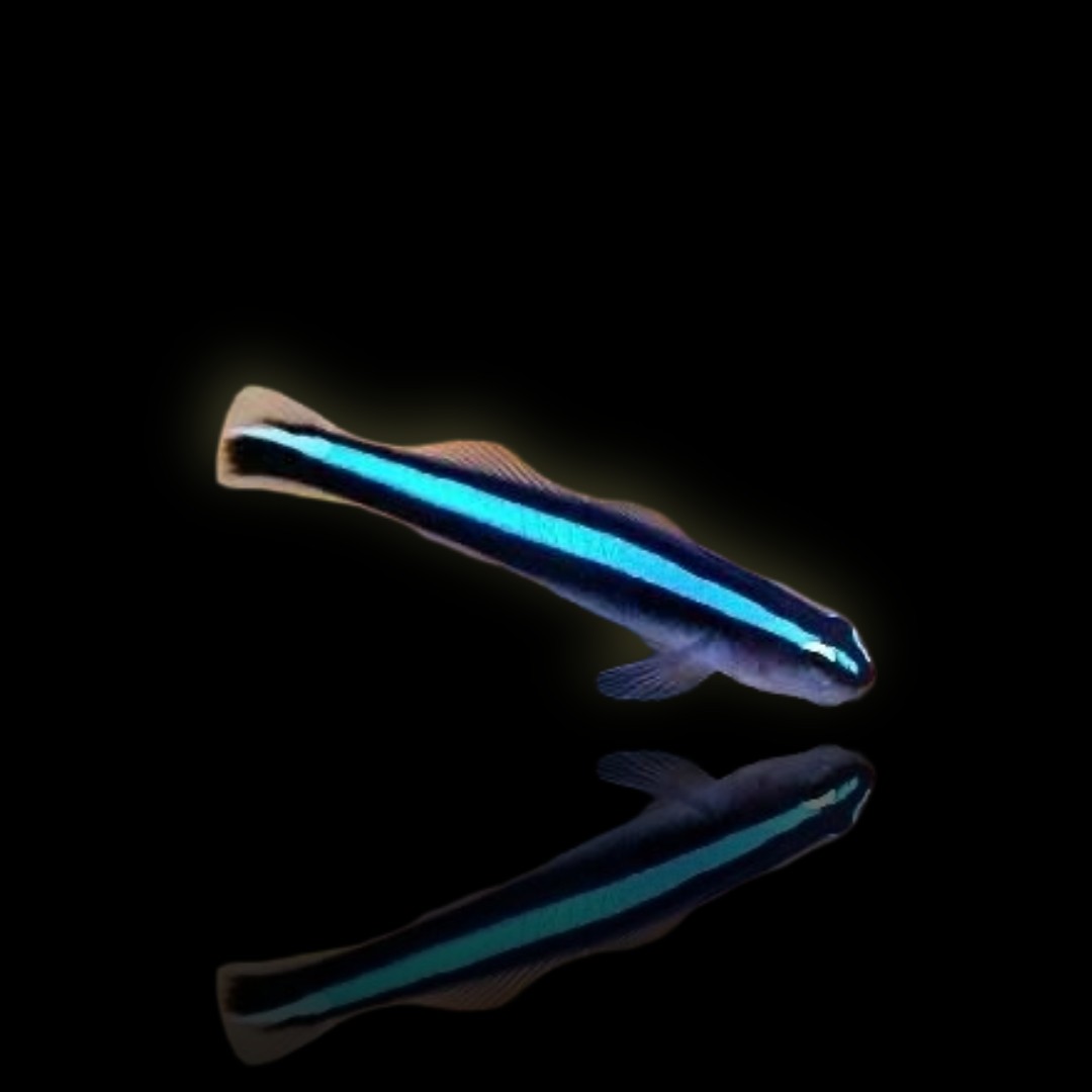 Die Gobiosoma oceanops, besser bekannt als die Neon-Grundel, gehört zu den bekanntesten und beliebtesten kleinen Rifffischen. Diese Art fällt sofort durch ihre leuchtend blauen Neonstreifen auf einem weiß bis hell gefärbten Körper auf, oft kombiniert mit gelben Akzenten am Kopf.