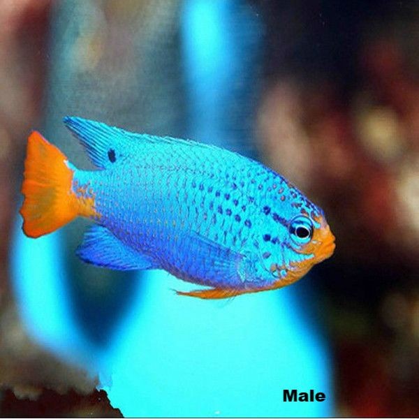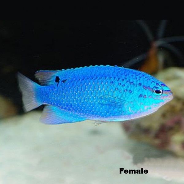 Der Sapphire Devil Riffbarsch ist mit 8 cm eine kleine Art unter den Riffbarschen.