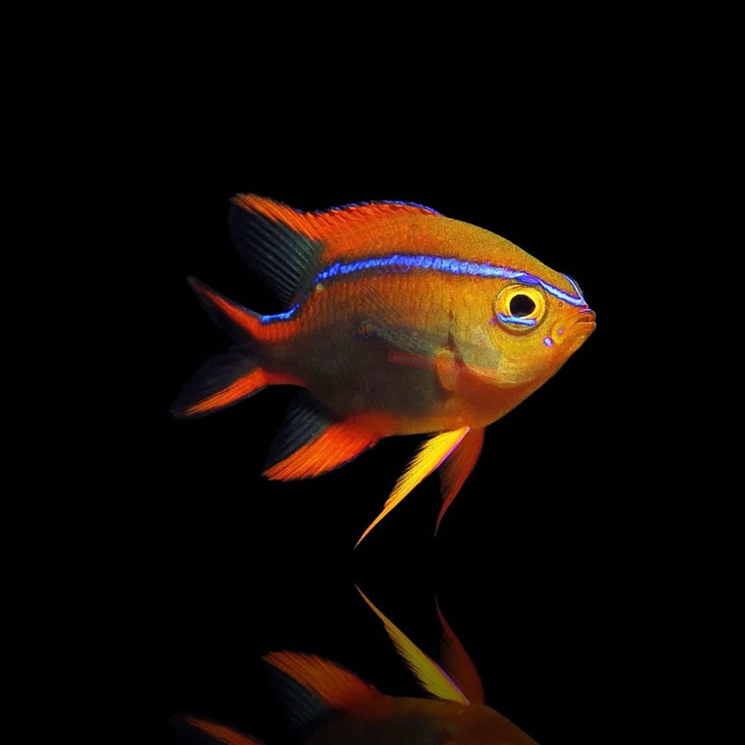 Der Neoglyphidodon crossi ist ein lebhafter und farbenfroher Rifffisch, der für sein auffälliges Aussehen und sein energetisches Verhalten bekannt ist. Mit seiner tiefblauen bis schwärzlichen Grundfarbe und den leuchtenden Farbakzenten ist dieser Riffbarsch ein echter Hingucker im Aquarium. In freier Wildbahn kommt diese Art in der Nähe von Korallenriffen und Lagunen vor, oft in flacheren Gewässern, wo es viele Versteckmöglichkeiten gibt.