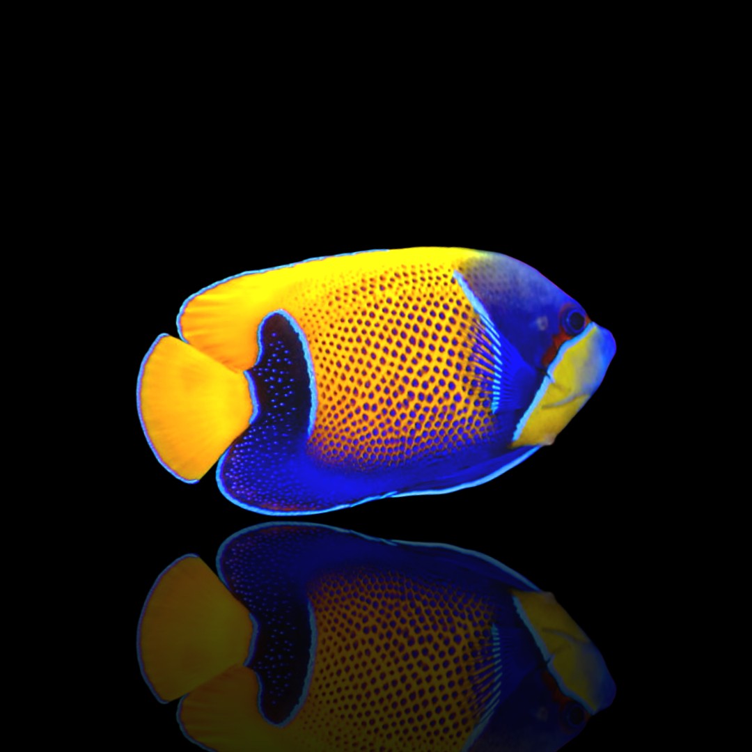 Der Pomacanthus navarchus , auch bekannt als Blauer Kaiserfisch oder Majestätischer Kaiserfisch, ist einer der beeindruckendsten Kaiserfische für Meerwasseraquarien. Im Jungtierstadium weist dieser Fisch auffällige blau-weiße Kreismuster auf, während ausgewachsene Fische eine leuchtende Mischung aus Blau, Gelb und Schwarz aufweisen. Diese Verwandlung macht die Art für Aquarianer zu etwas ganz Besonderem.
