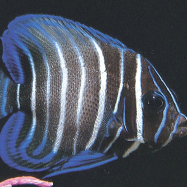 Der Sechsband-Kaiserfisch oder der Sechsband-Kaiserfisch ist etwa 45 cm lang und eignet sich für die etwas größeren Aquarien.