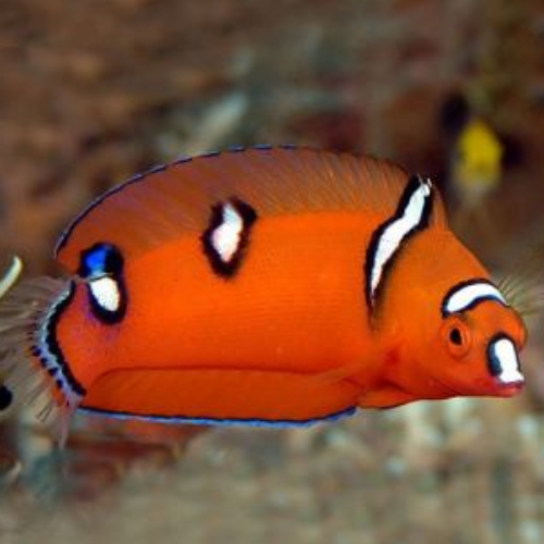 Der Coris gaimard ist ein wunderschöner und dynamischer Lippfisch, der für seine beeindruckenden Farbwechsel im Laufe seines Lebens bekannt ist. Jungtiere haben einen leuchtend orangefarbenen Körper mit weißen Flecken, während erwachsene Tiere eine tiefrote bis rotbraune Farbe mit einem leuchtend gelben Schwanz und grün-blauen Akzenten an den Flossen entwickeln.