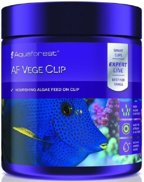 Spezialfutter, das unter anderem für pflanzenfressende Fische bestimmt ist. Um eine gute Entwicklung und Resistenz gegen Krankheiten zu gewährleisten, besteht AF Vege Clip aus 7 Algenarten und ist mit Phytoplankton, Mineralien und Vitaminen angereichert und bildet eine vollständige ausgewogene Ernährung für alle Fischarten. Das Futter wird auf den Clip gelegt, so dass es an jeder Stelle des Aquariums aufgehängt werden kann, sodass die Fische frei schwimmen und fressen können.