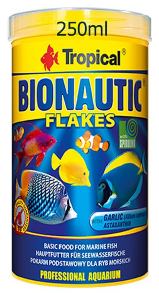 Wenn Sie dennoch nach einer vollwertigen täglichen Ernährung für Ihre kleinen und mittelgroßen Meeresfische suchen, entscheiden Sie sich für Tropical Bionautic Flakes. Das Futter enthält hauptsächlich Rohstoffe aus dem Meer, die für eine hervorragende Kondition der Fische sorgen. Darüber hinaus enthalten die Bionautic Flakes auch 8,75 % Spirulina, das reich an leicht assimilierbaren Proteinen, Vitaminen, Spurenelementen und natürlichen Carotinoiden ist. Es erleichtert auch das reibungslose Funktionieren des Verdauungstraktes und schützt somit die Fische auch vor den gefährlichen Folgen einer Verstopfung.