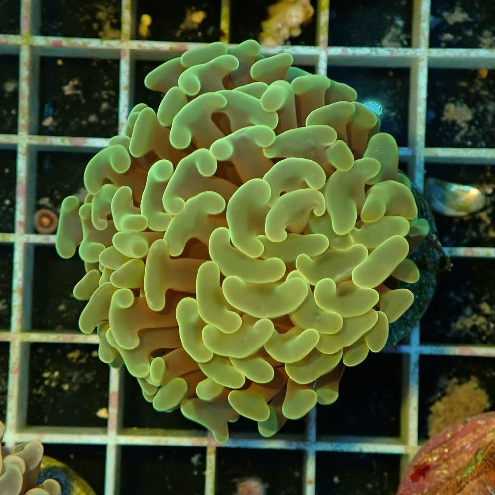 Die Hammerkoralle gibt es in verschiedenen Farben, von leuchtendem Grün bis hin zu dezentem Braun oder Gold. Sie ist eine recht robuste Koralle, benötigt aber ausreichend Platz, da ihre Tentakeln beim Ausdehnen lange „Fingertentakel“ entwickeln können, die umliegende Korallen berühren können.