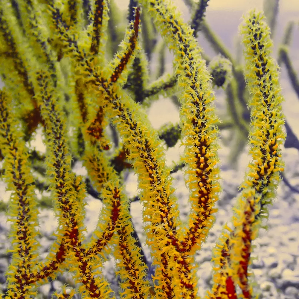 Die Menella Yellow ist eine Weichkoralle aus der Familie der Menellidae. Aufgrund seiner leuchtend gelben Farbe und federähnlichen Struktur ist es eine beliebte Aquarienart. Menella Yellow kommt im Indopazifik in Tiefen von 5 bis 30 Metern vor. Sie wachsen normalerweise auf Felsen und Riffen, wo sie sich von Plankton und anderen kleinen Partikeln ernähren.