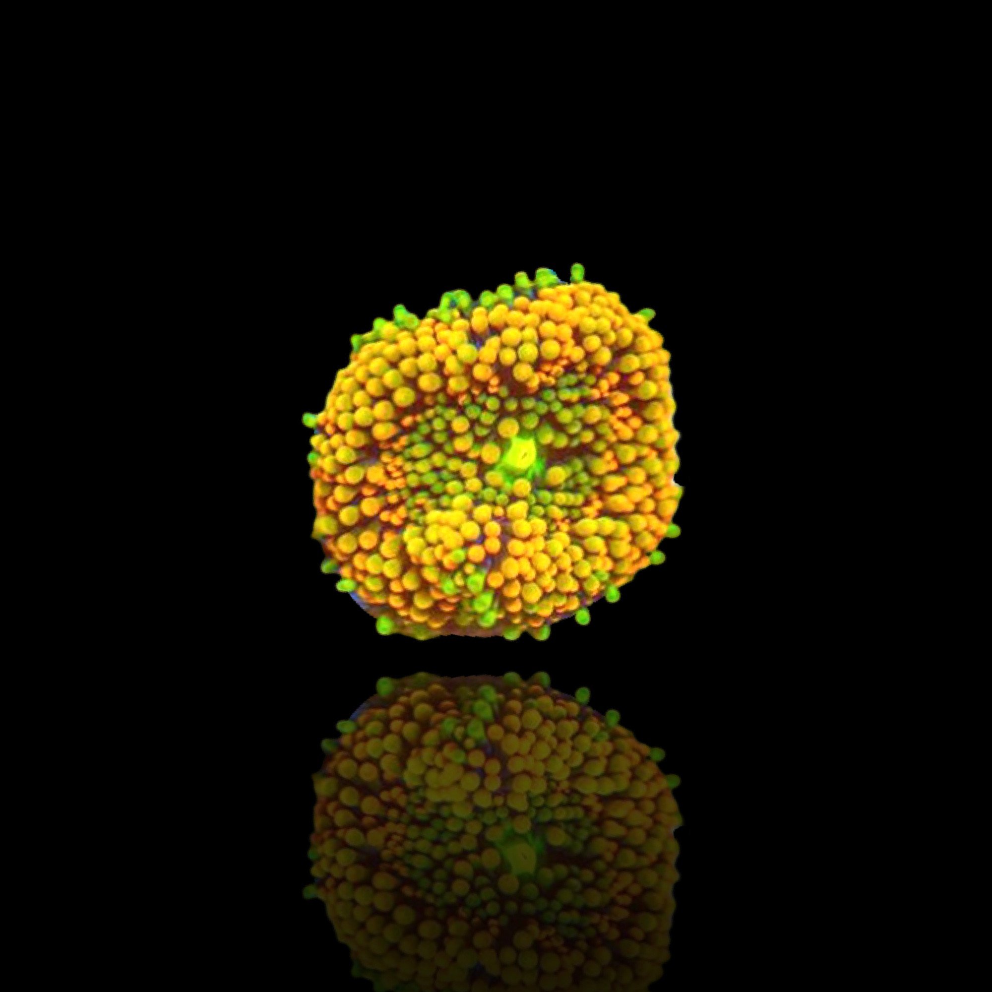 Die Ricordea florida Fluo Orange ist eine pflegeleichte und farbenfrohe Wahl, die jedes Riff mit einem leuchtenden, fluoreszierenden orangefarbenen Akzent bereichert. Ideal für alle, die eine auffällige und dekorative Pilzkoralle suchen.