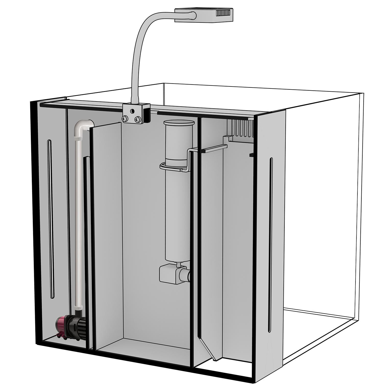 Komplettes Nano-Meeresaquarium mit hochwertiger Glasoberfläche. Beeindruckendes modernes Design mit 45°-Glaskanten. Ausgefeilte Komponenten sorgen für zuverlässigen Betrieb und volle Funktionalität. Das unauffällig integrierte Filterbecken garantiert eine äußerst einfache Bedienung bei minimalem Wartungsaufwand. Dank des ausgeklügelten Designs der Filtereinheit lässt sich die gesamte Technik unauffällig durch eine elegante Glasabdeckung verbergen.