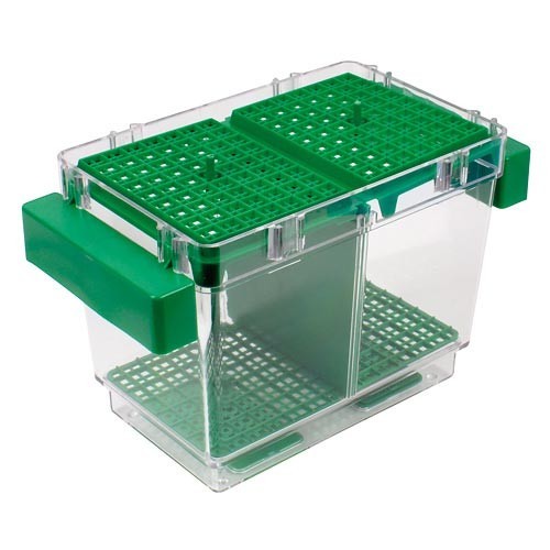 Schwimmender Zuchtbehälter, der sich dem Wasserstand anpasst. Auch als Anzuchtbehälter geeignet. Mit Trennwand zum Platzieren von zwei Fischen.