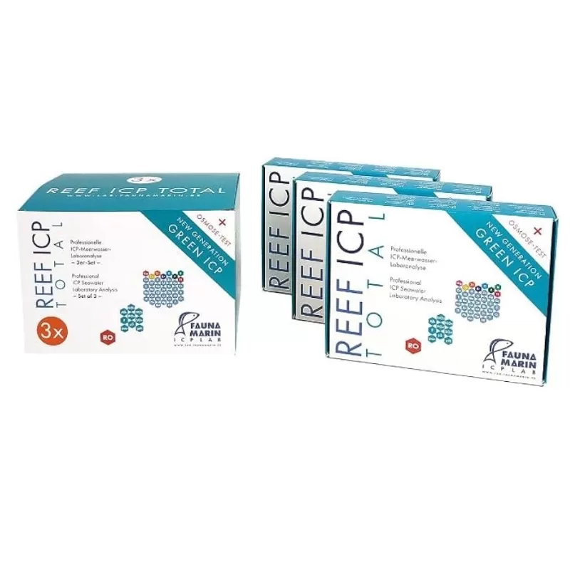 Fauna Marin Reef ICP Total 3 in 1 Box bietet eine umfassende und genaue Analyse Ihres Meerwassers. Mit diesem Test erhalten Sie einen vollständigen Überblick über mehr als 90 verschiedene Wasserwerte, von Makroelementen über Spurenelemente bis hin zu Schadstoffen.