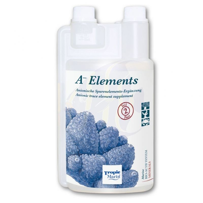 - Zusammen mit Tropic Marin ® K + ELEMENTS bietet das A-ELEMENTS mit nur zwei Lösungen ein vollständiges Profil der essentiellen Spurenelemente.
