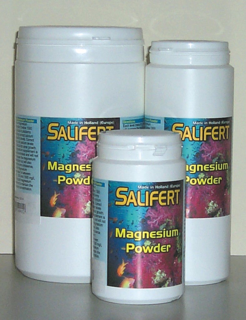 Die Aufrechterhaltung einer korrekten Magnesiumkonzentration ist daher sehr wichtig und indirekt für ein schnelles Korallen- und Kalkalgenwachstum verantwortlich. Magnesium wird durch Algenwachstum und auch durch die Verwendung von viel Kalkwasser oder durch hohe Calciumkonzentrationen, hohe Alkalität und pH-Werte verbraucht.