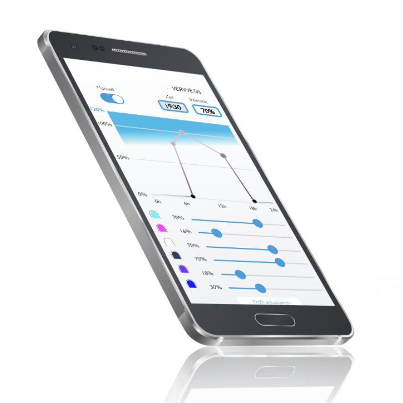 Door af te zien van sterk geconcentreerde lenzen en een diffusorschijf te gebruiken, wordt een perfecte verlichting bereikt voor oppervlakken van 80 x 70 cm en diepten tot 80 cm. Het volledige licht van de VERVvE G3 wordt zonder verlies in het aquarium gericht en vergelijkbaar met een T5.