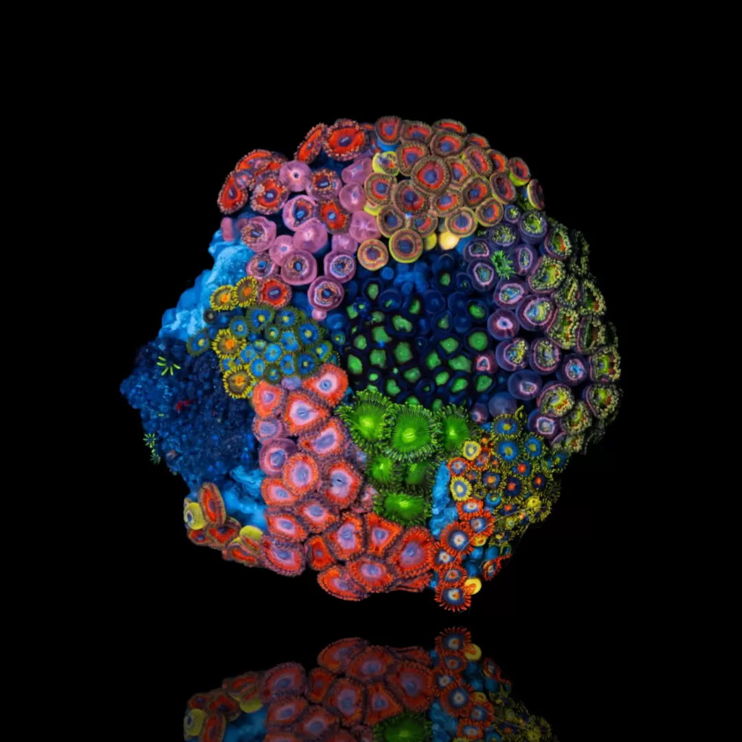 - Kleurrijke mix: Deze Zoanthus-soort bevat een variatie aan kleuren, zoals rood, groen, oranje en blauw.