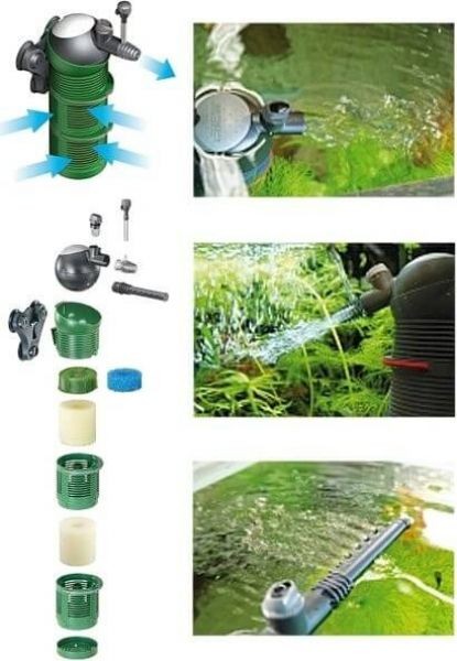De filtermedia wordt geleverd met schuimfilterpads; optioneel zijn (fijne) filterkussens, BioMECH, SubstratePRO en Aktiv.