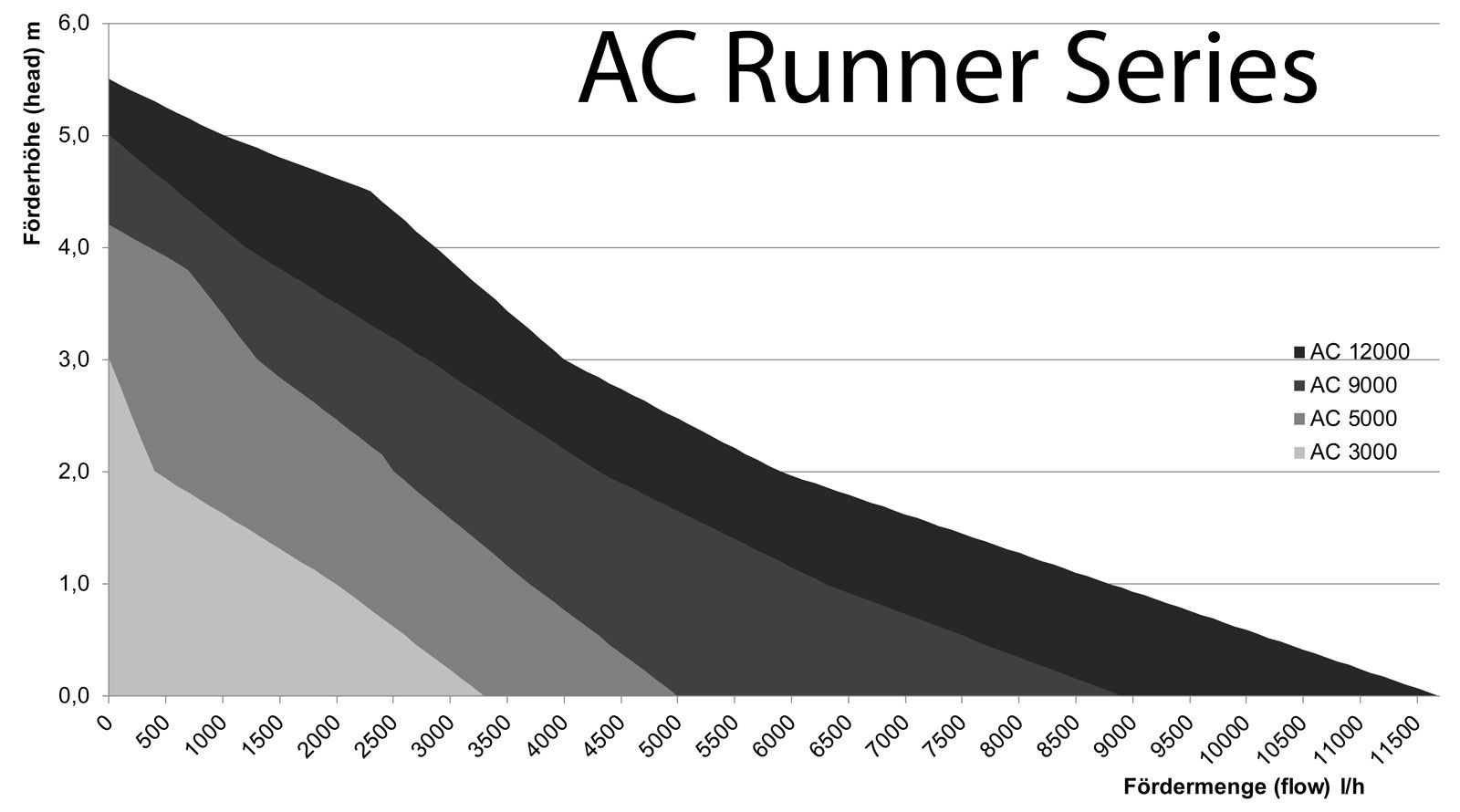 Pump power up to 9,000 l/h up to 12,000 l/h