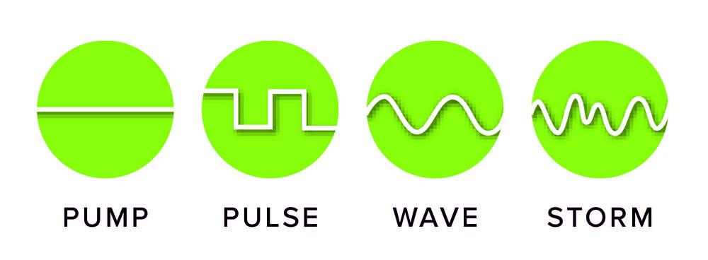 - Unieke digitale controller met 3 golfmodi en een constante stromingsmodus