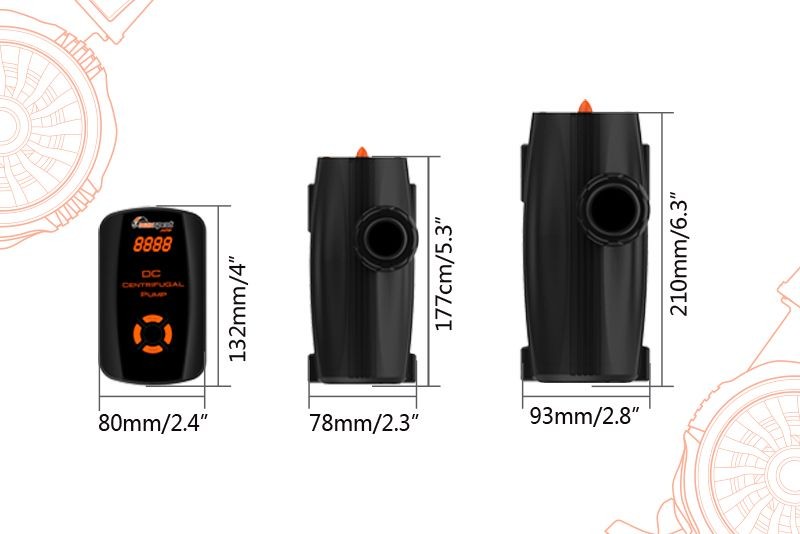 | MJ-DC12k | 12,000 L/h | DC24V, 6.35A | 120W | 5m | 210x110x93mm | 1,75kg | 32mm (1.25”), 40mm (1.5”) |