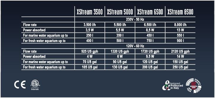 XStream is een serie bewegingspompen met minimale belasting in het aquarium om een natuurlijk en tegelijkertijd gezond aquatisch milieu te bevorderen. Compactheid, vermogen, laag energieverbruik en hoogwaardige componenten Capaciteit 8000l/h