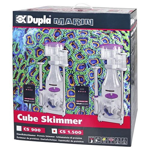 Cube Skimmers zijn zeer compacte cone eiwitafschuimers met uitstekende prestaties. Cube Skimmers functioneren volgens het tegenstroomprincipe. Deze constructie, waarin lucht en water elkaar in tegengestelde richting passeren, is de meest efficiënte manier van afschuiming. De modificatie van de skimmerpompen (dispergatorprincipe door naaldrad) brengt een lucht- en watermengsel met zeer fijne luchtbellen tot stand. Dat leidt tot een extreem efficiënt afschuimvermogen. Dankzij de conische constructie van de Cube Skimmer, mede in combinatie met de effectieve luchtverdelingskamer die voor minder opwerveling zorgt, ontstaat er een bijzonder fijn schuimbeeld terwijl er tegelijkertijd veel flotaat wordt gevormd. Bij alle Cube Skimmers kan het waterniveau in de skimmerkamer met behulp van een instelschroef exact worden aangepast en kan zo perfect op het waterniveau in het filterbassin of in de filterbak worden aangepast. Bij de Cube Skimmers CS500/900/1500 kunnen de skimmerpompen traploos elektronisch worden geregeld, zodat ze altijd op veranderende belastingssituaties in het aquarium kunnen worden aangepast. De borstelloze (brushless-technology) 6-polige synchroonmotoren die daarbij worden gebruikt, zijn zeer stil en kunnen door de verschillende vermogensstanden optimaal aan de desbetreffende behoeften van het aquarium worden aangepast. Het gebruik van keramische assen alsmede het gebruik van keramische lagers verhoogt de levensduur van de pompen en motoren, garandeert een uitstekende stille loop en voorkomt roestvorming door het zoute water.